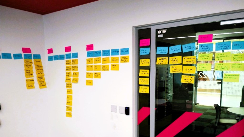 Storyboarding with sticky-notes, this was great, a hivemind to work out solutions and paths, all as equals. I’d only ever seen pictures of this, never been part of it, it was brilliant. We then split up into smaller teams to discuss a topic from the storyboard in depth, listening, discussing and solving problems as a team, then presenting our answers.
